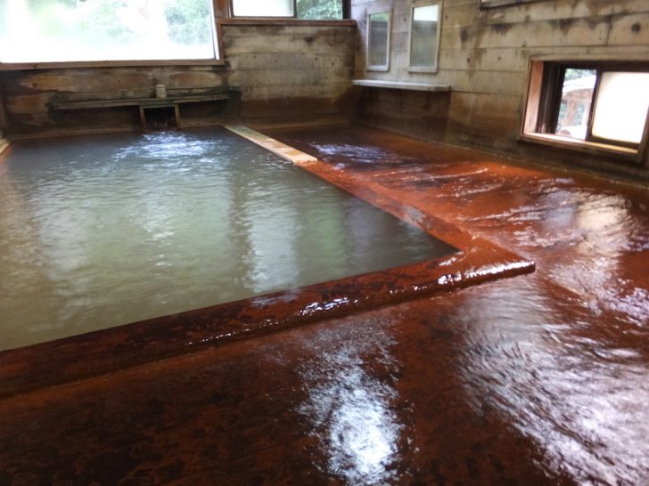 古遠部温泉は、青森県平川市碇ヶ関西碇ヶ関山1-467、平川沿いに在る一軒宿の温泉です。浴室に温泉が川のように流れ飲泉可能。湯の花が浴室に大量に付着し、旅館の外にも堆積物のドームを形成しています。入浴施設は男女別の内湯のみで、人が少ない時間帯では、浴室で仰向けになり、浴槽から溢れ出る湯を楽しめ、地元では「トドになる」と言っています。1975年(昭和50年)ころ、黒鉱のボーリングをしたところ、自噴しました。古遠部温泉の他に、平川市内には宿泊施設や日帰り温泉を含めて20か所以上の温泉があります。